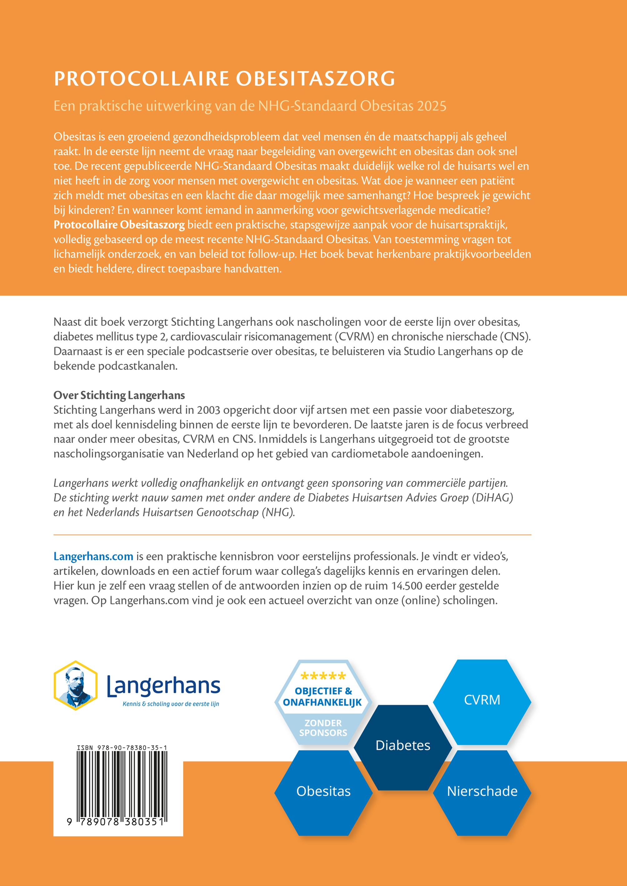 Obesitas is een groeiend gezondheidsprobleem dat veel mensen én de maatschappij als geheel raakt. In de eerste lijn neemt de vraag naar begeleiding van overgewicht en obesitas dan ook snel toe. De recent gepubliceerde NHG-Standaard Obesitas maakt duidelijk welke rol de huisarts wel en niet heeft in de zorg voor mensen met overgewicht en obesitas. Wat doe je wanneer een patiënt zich meldt met obesitas en een klacht die daar mogelijk mee samenhangt? Hoe bespreek je gewicht bij kinderen? En wanneer komt iemand in aanmerking voor gewichtsverlagende medicatie? Protocollaire Obesitaszorg biedt een praktische, stapsgewijze aanpak voor de huisartspraktijk, volledig gebaseerd op de meest recente NHG-Standaard Obesitas. Van toestemming vragen tot